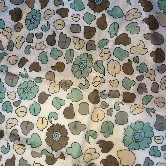 White Hakoba Suit Set with Digital Print – Elegant Cotton Suit for Women