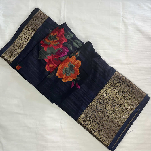 Women's Vaira Oosi Saree with Contrast Border & Unstitched Blouse | Traditional Silk Elegance