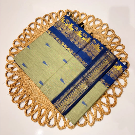 Women's Kalyani Cotton Tower Saree Pista Green with Royal Blue Zari Border
