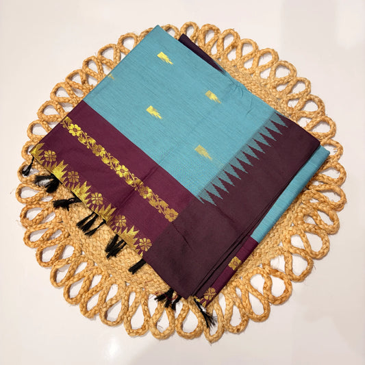 Women's Kalyani Cotton Tower Saree Zari Temple Border