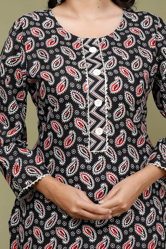 Women Pure Cotton naira cut Kurta and Pant Set