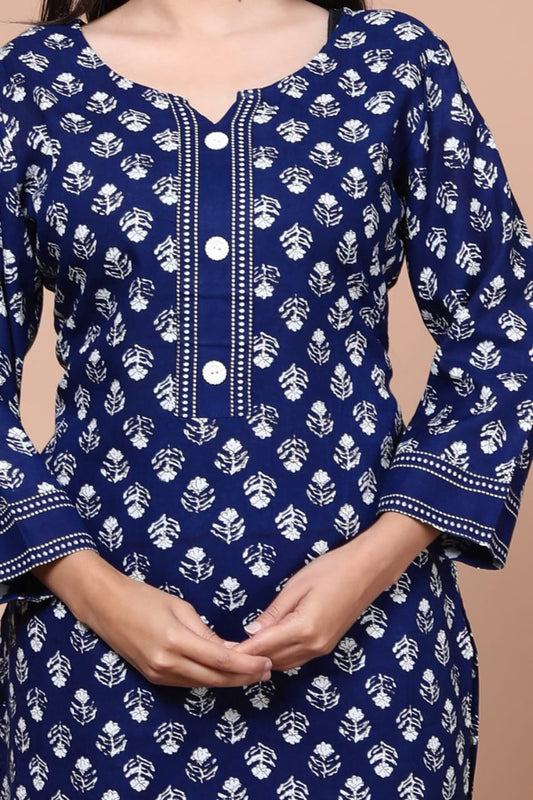 Women’s Ajarak Cotton Printed Kurtis Blue