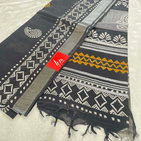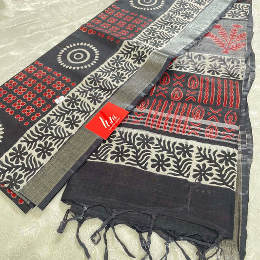 Women's Bafta Silk Zari Block Printed Saree with Blouse Piece (Black, Red)