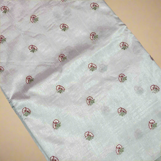 Women's White Slik Blend Floral Embroidery Saree With Un-Stiched Blouse