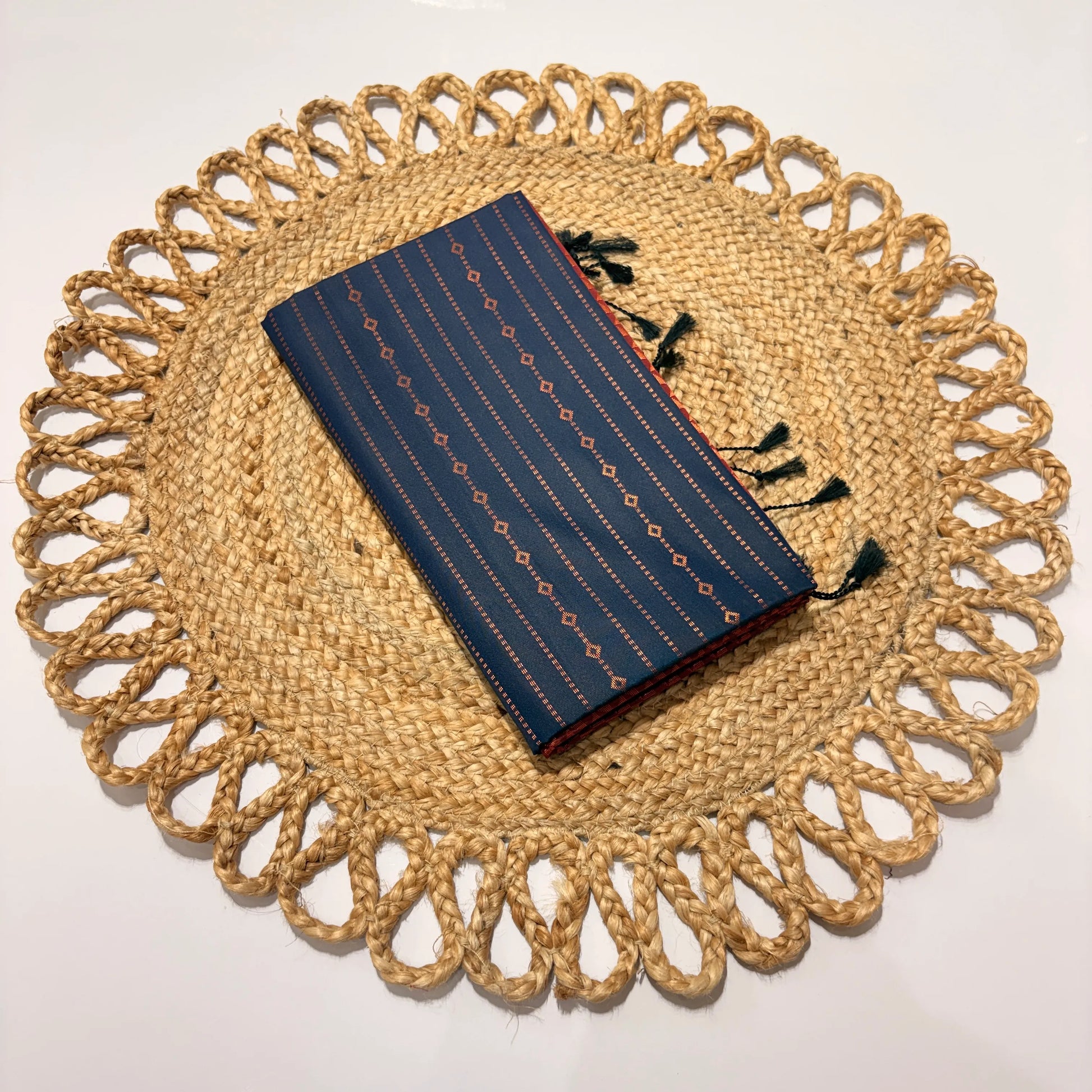 This saree features a stunning contrast border that beautifully frames the delicate Vaira Oosi weaving, creating a perfect balance between traditional artistry and contemporary style. The soft, breathable fabric ensures all-day comfort while maintaining a graceful, elegant drape that flatters every body type.