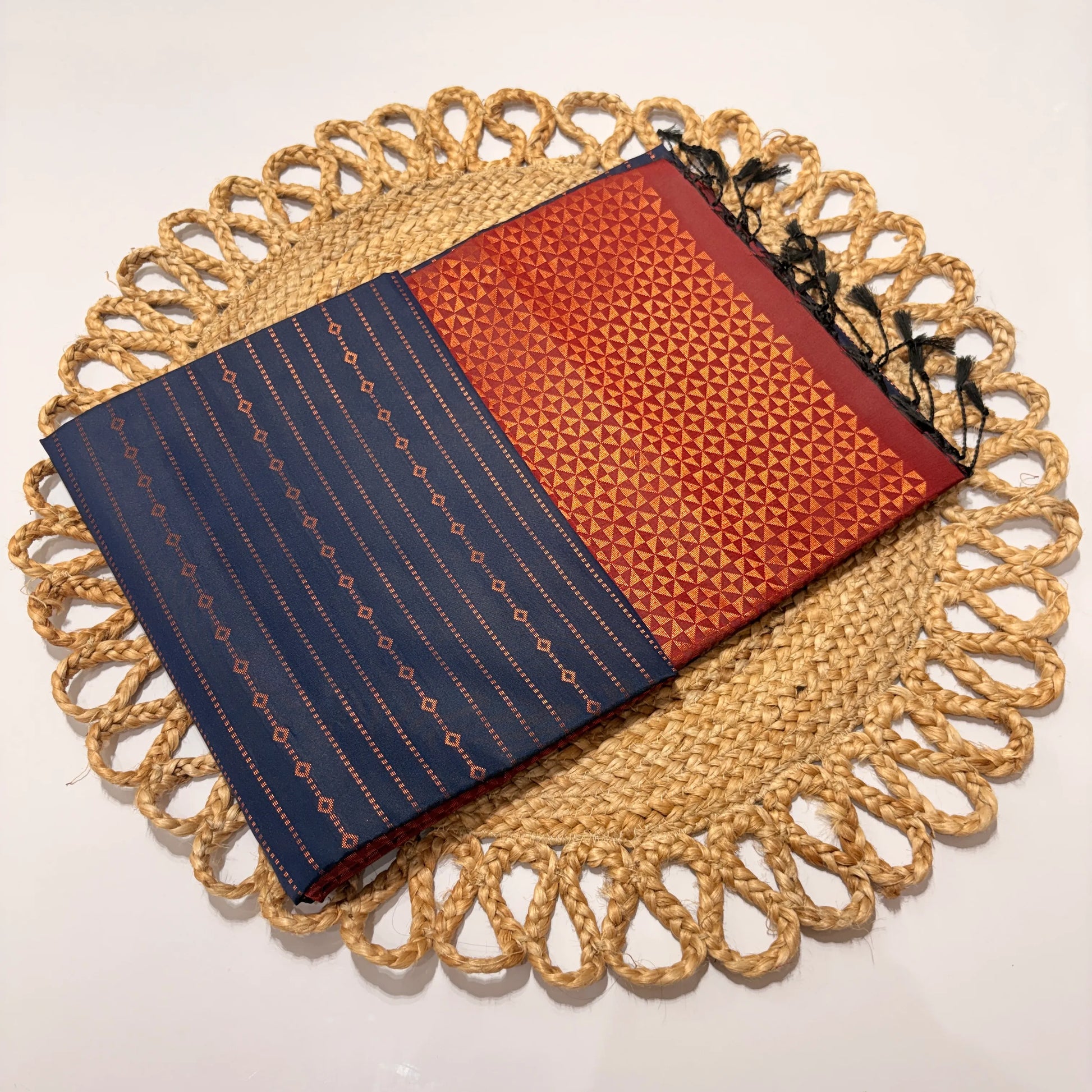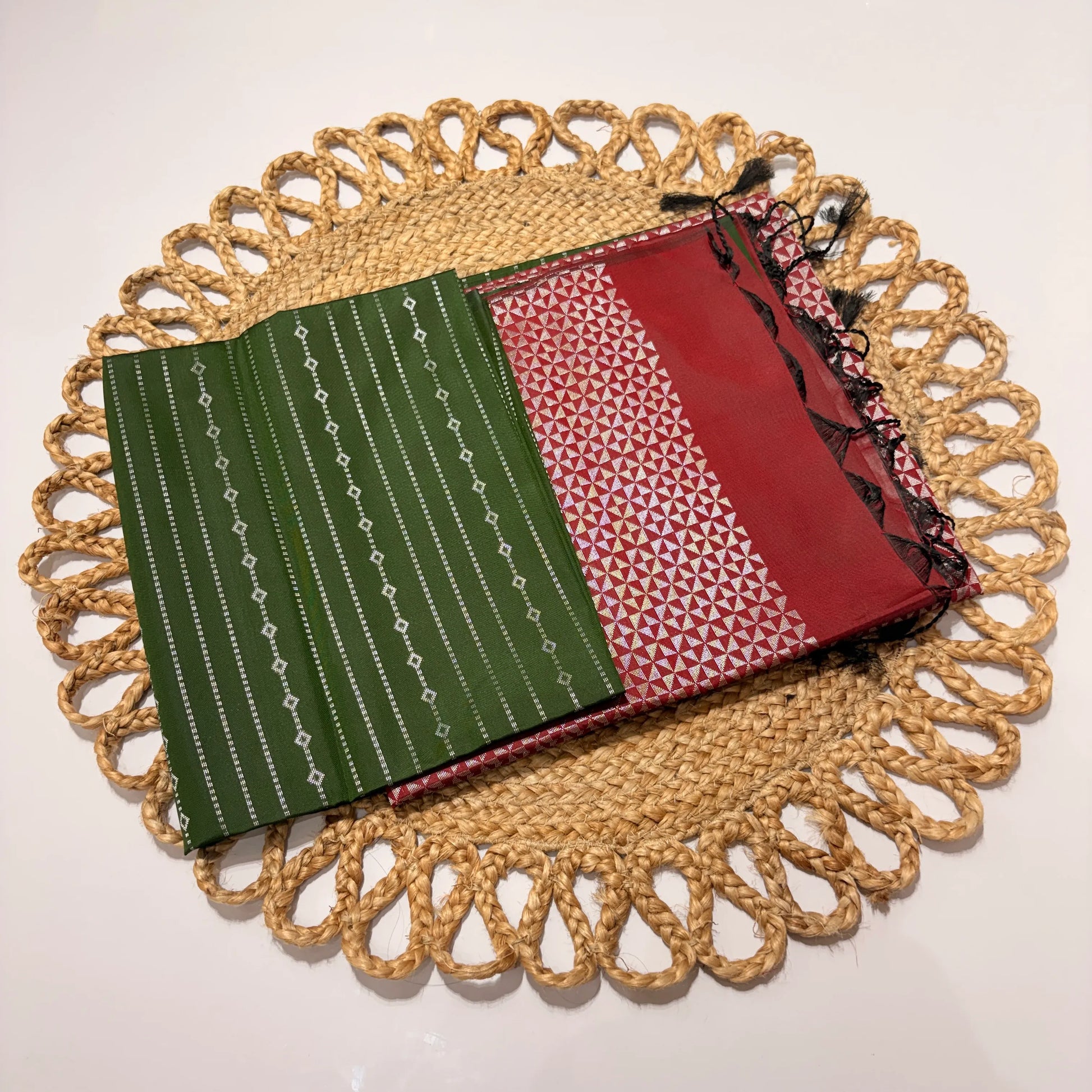 Women's Vaira Oosi Saree with Contrast Border & Unstitched Blouse | Traditional Silk Elegance