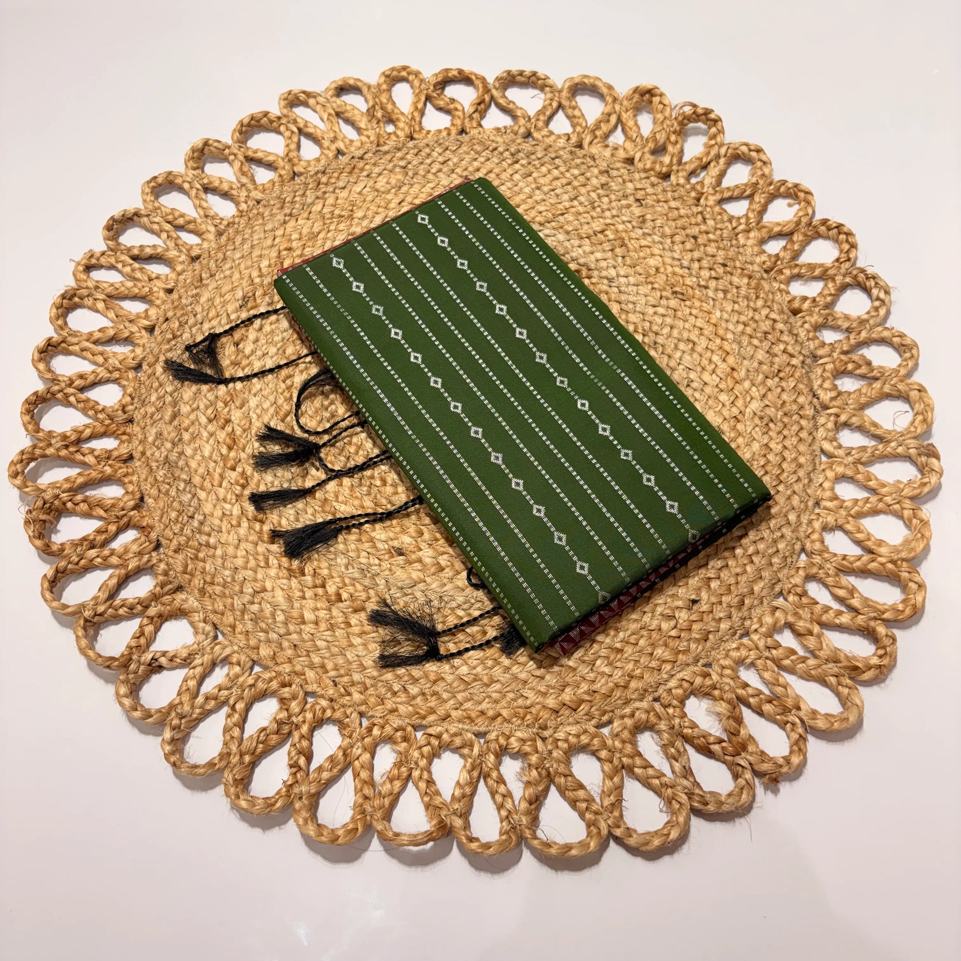 Drape yourself in timeless elegance with this exquisite Women's Soft Vaira Oosi Saree, a masterpiece of traditional South Indian craftsmanship. The Vaira Oosi technique creates an exceptionally soft, lightweight fabric with intricate woven patterns that add subtle sophistication to your festive and formal wardrobe.